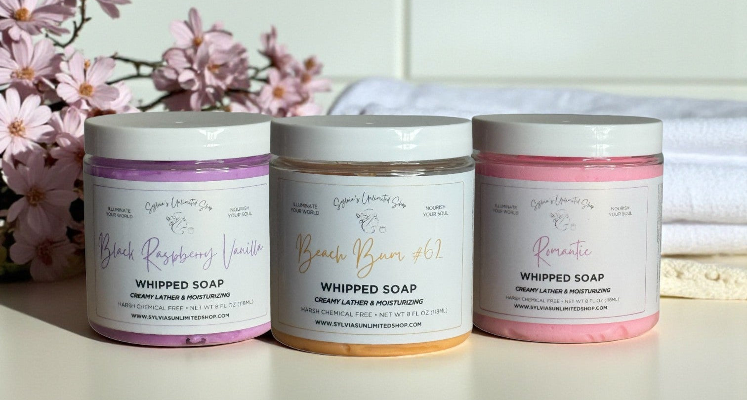 Introducing our luxurious handmade whipped soap, crafted to elevate your bathing experience! This velvety formula whips air into rich, fluffy lather that envelops your skin, providing a gentle yet effective cleanse. Infused with nourishing ingredients, our whipped soap not only cleanses but also hydrates and rejuvenates, leaving your skin feeling soft, smooth, and pampered. Perfect for daily use, it transforms your routine into a spa-like indulgence. Treat yourself to the ultimate self-care with our irresistibly creamy and nourishing whipped soap!