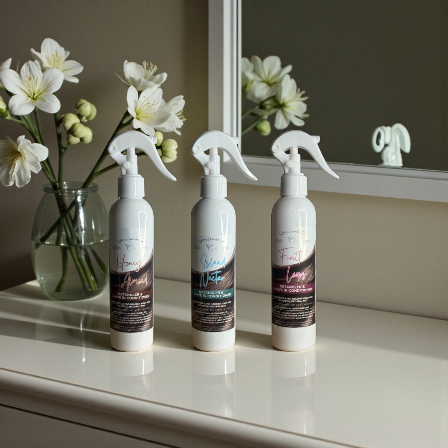 Our lightweight leave-in conditioner, detangler, and heat protectant spray glides through strands with silky ease—softening, smoothing, and shielding from breakage in every spritz. Designed to melt knots instantly and protect up to heat, it leaves your hair touchably soft, beautifully manageable, and ready for any style.