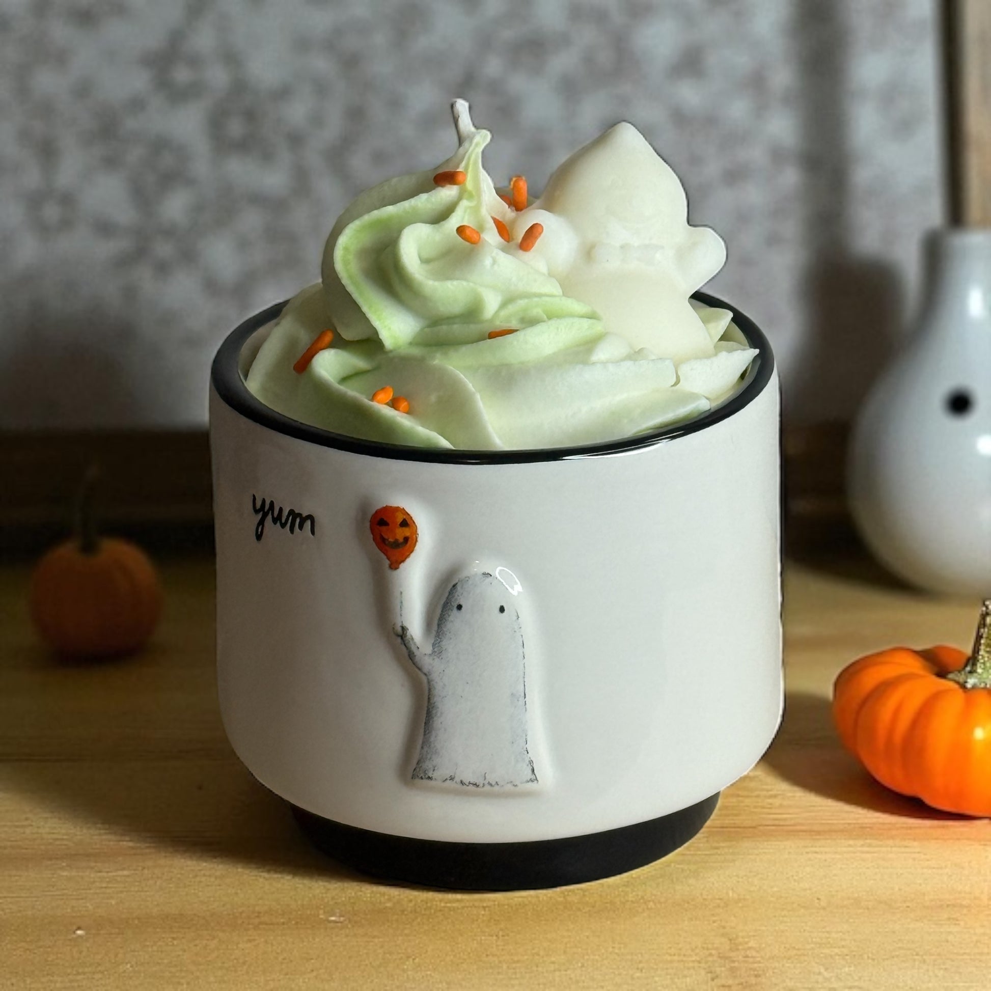 Pop, fizz, and boo! This adorable pink ghost candle is topped with a whipped wax swirl and a cute little ghost embed — perfectly festive and full of sparkle. The scent is a refreshing blend of crisp pear, bubbly prosecco, and a touch of vanilla — light, juicy, and joyfully effervescent.