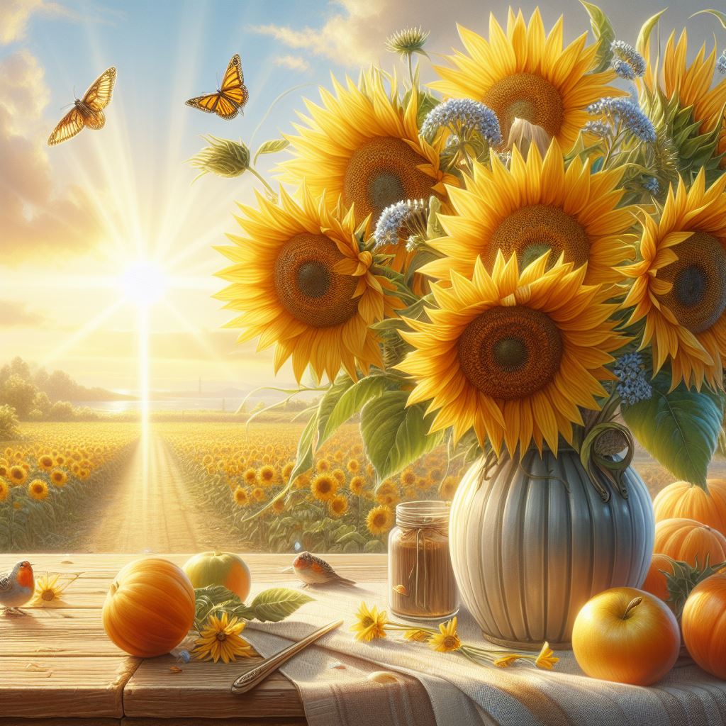 Infuse the atmosphere with happiness and liveliness through the warm and delightful essence of sunshine and the uplifting scent of sunflowers and the invigorating aroma they bring.